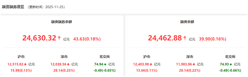 上证报中国证券网讯(卢伊 记者 徐蔚)11月25日,A股两融余额为24630.32亿元,较上一往翌日加多43.63亿元,占A股运动市值比例为2.59%。当日两融往还额为1879.83亿元,较上一往翌日加多230.65亿元,占A股成交额的10.29%。